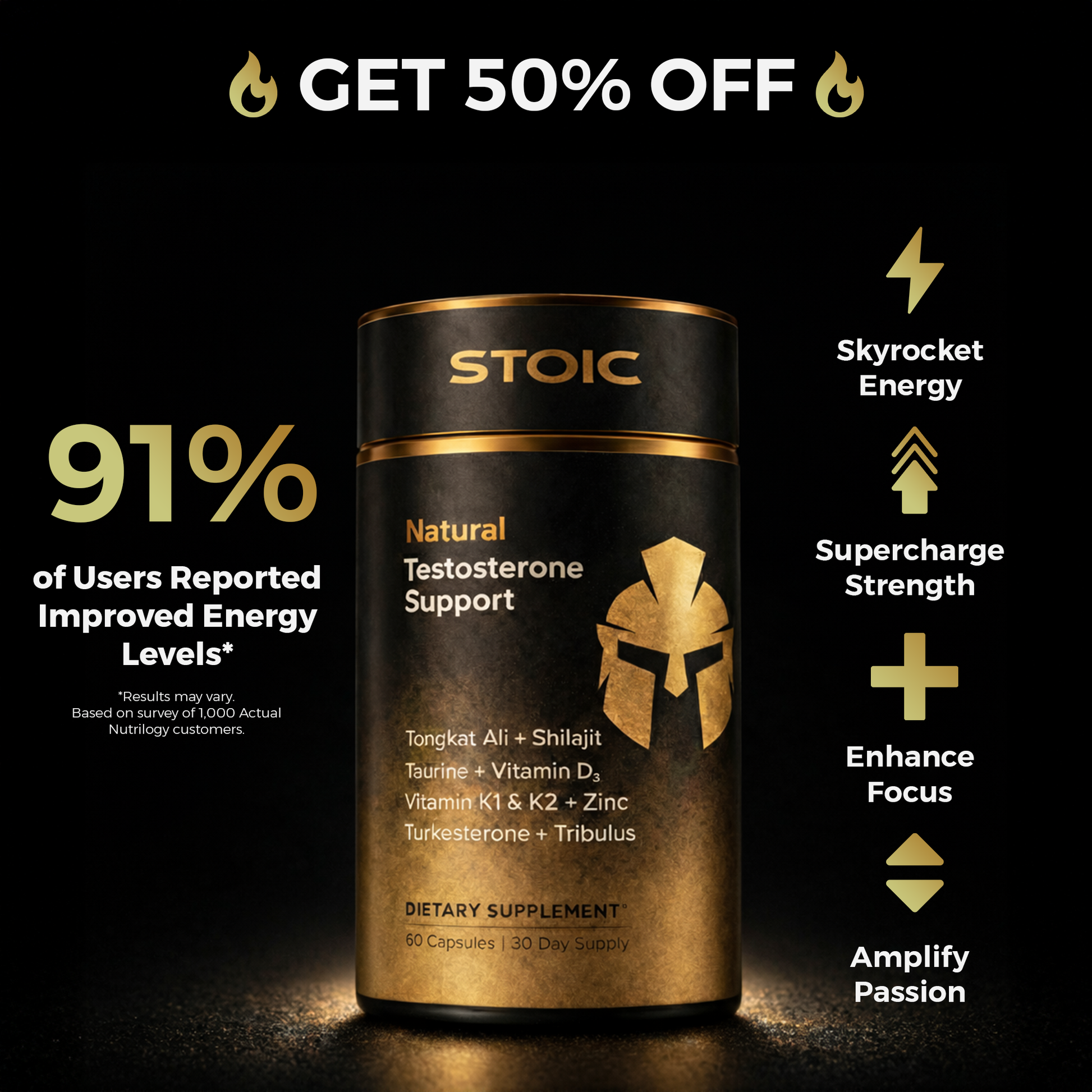 Restore your drive, performance, and hormonal balance with Stoic’s high-potency testosterone formula.